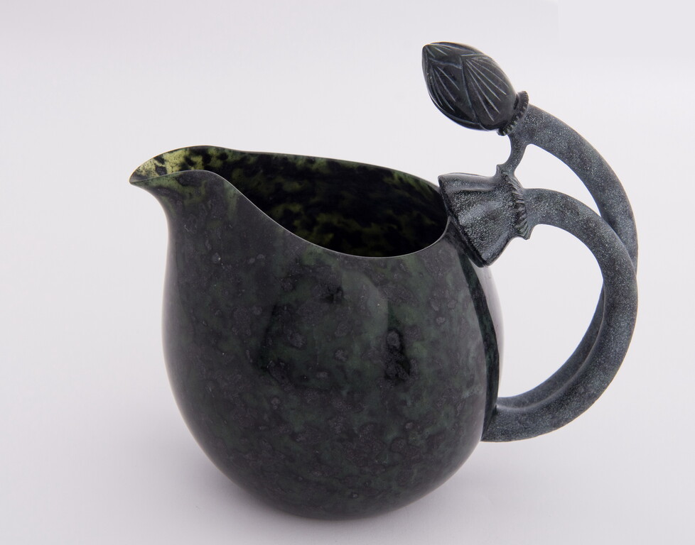 此茶海之柄巧雕為一株清麗淡雅的荷花,與茶海本身一體成形,顯現創作者過人的雕刻功力。