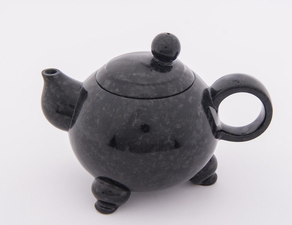 此壺造型簡約,因應原料特性,保留部分原料巧雕為三足,壺鈕不似一般位於壺蓋正上方,看似旋轉並偏離軌道,寓意扭轉乾坤。