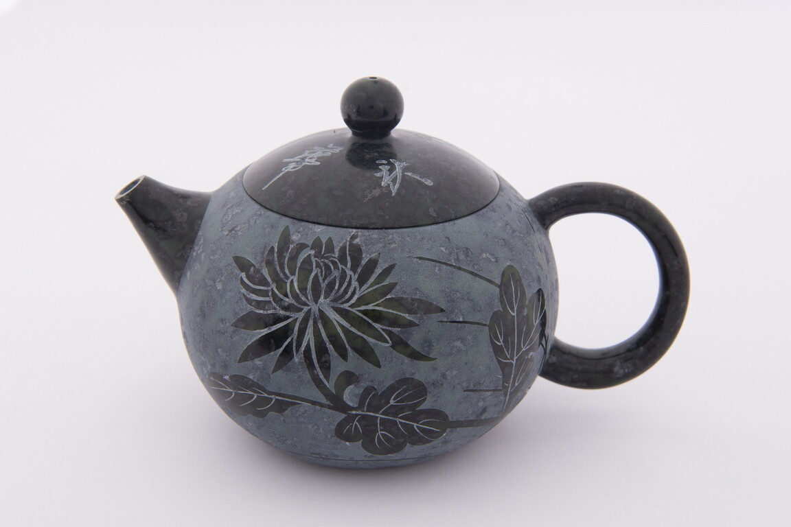 此壺之壺身圓潤,刻有菊花,似乎感受到涼涼的秋意。工法為薄雕,比淺浮雕更淺,雕線更薄,也更重意境,即「層薄而富有畫意」,展現創作者過人的雕刻功力。
