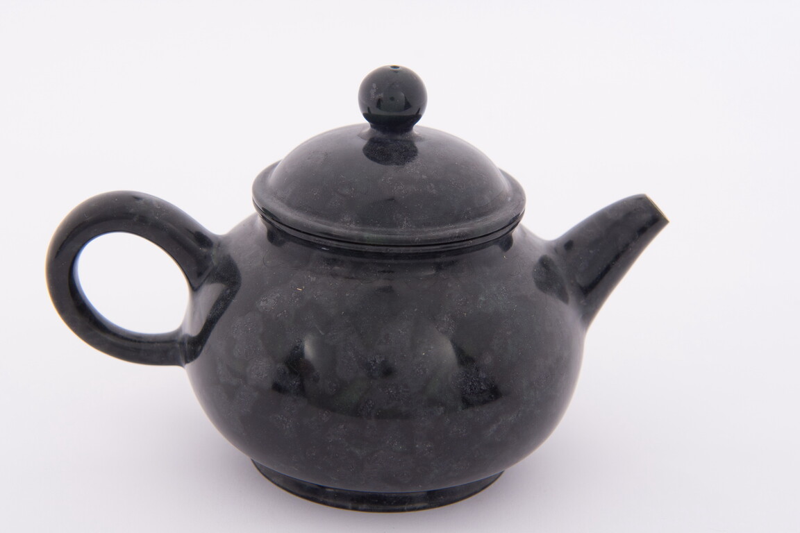 此壺發想自紫砂壺潘壺形制,壺腹為扁柿形,是為「矮潘」。