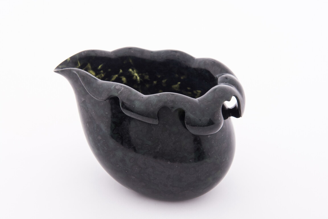茶海邊緣為捲曲的荷葉,展現創作者過人的雕刻功力。