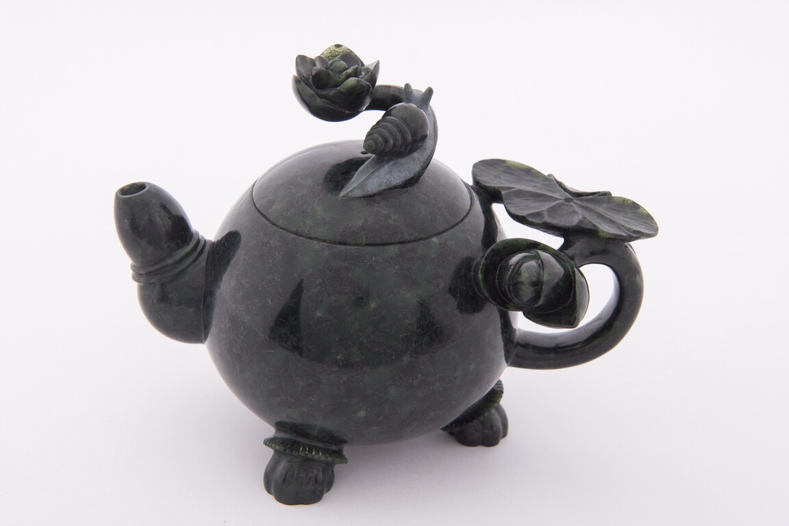 此壺之壺鈕、壺把為荷花,壺鈕上更有隻蝸牛緩步往上爬,寓意和平美滿,步步高升。