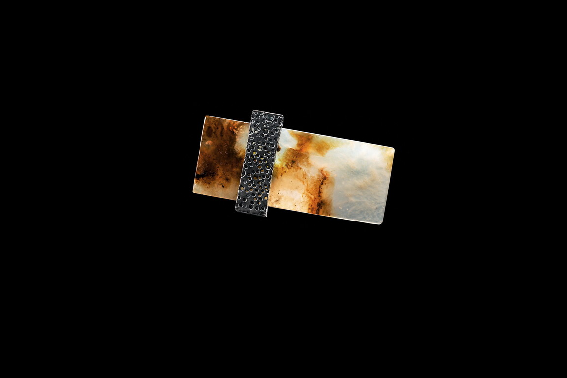 「飾寶」取材花蓮美石,墨玉、藍玉、雪花玉以及各色玉髓,運用金工設計打造十全十美的珍飾。