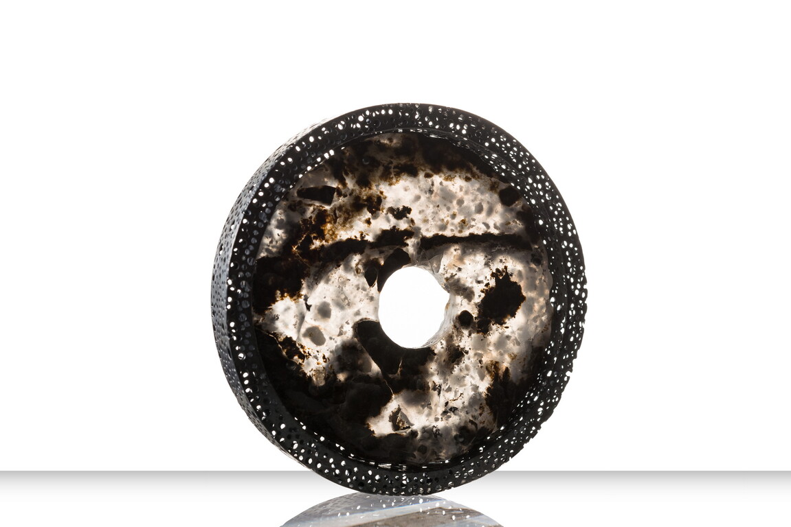 「飾寶」取材花蓮美石,墨玉、藍玉、雪花玉以及各色玉髓,運用金工設計打造十全十美的珍飾。