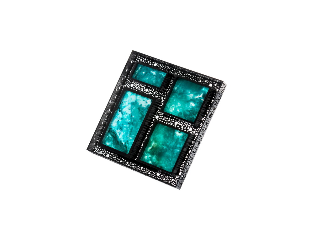 「飾寶」取材花蓮美石,墨玉、藍玉、雪花玉以及各色玉髓,運用金工設計打造十全十美的珍飾。