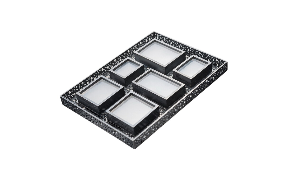 「飾寶」取材花蓮美石,墨玉、藍玉、雪花玉以及各色玉髓,運用金工設計打造十全十美的珍飾。