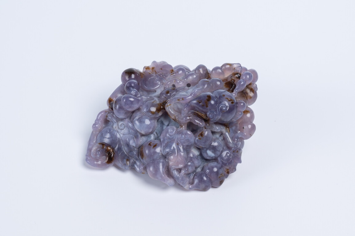 學名紫玉髓,大多為玻璃質地,以紫中透紅之「紅茄紫」,最為吸引人。紫玉色澤極不均勻,同一塊原石,包含淡到濃紫,有色帶和色暈的現象,另有花紫、灰紫、黃紫等。