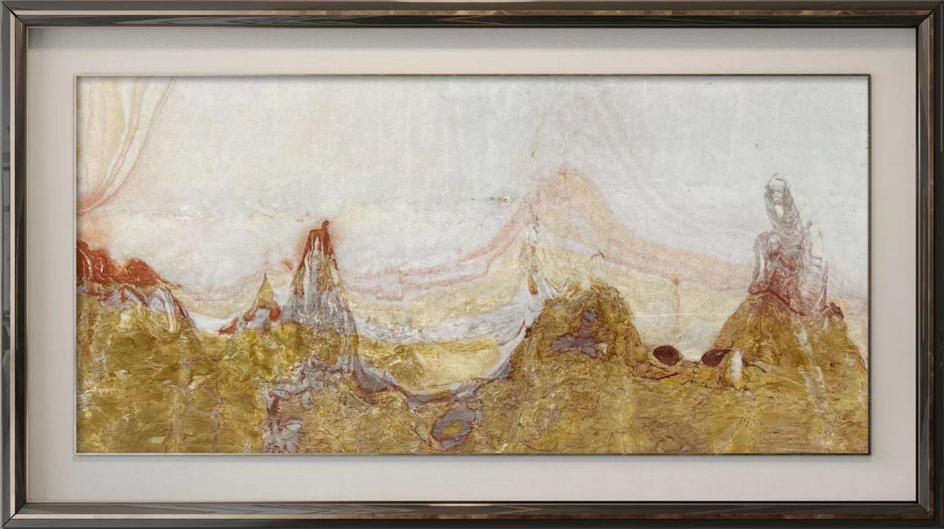 “正道之光,照在大地上,把每個黑暗的地方,全部都照亮”。這是一塊清江石水料的切片,左邊的人物手握禪杖,一身正氣,自帶光芒,與右邊的人物形象形成了鮮明的對比。正與邪,佛與魔的刻劃,給此石賦予了一種哲學的思考,遠處金色的聖山,線條流暢,令人嚮往。讓我們精心祈禱,留住一份溫暖善良在世間,留住一份愛與正義在世間,讓我們執意于那正道的路途,不畏懼路的狂風雨吧!