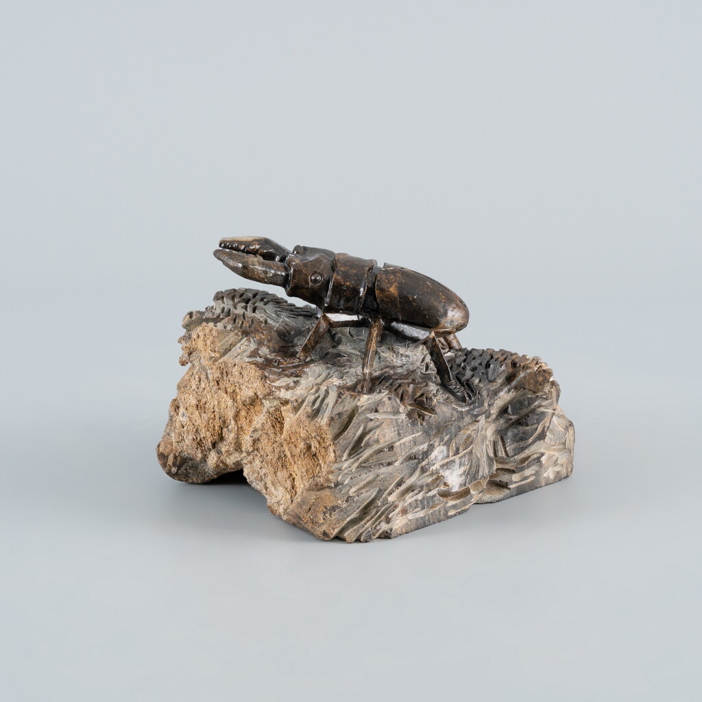 運用石頭本身的色澤紋理,巧雕為甲蟲。