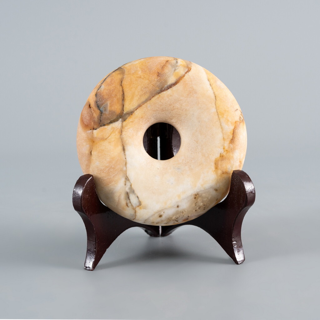 玉璧是一種古代用來祭祀的玉器,圓形的玉片,中間有圓形的孔。「圓」代表了圓滿、圓通或圓徹,具有無限的包容性和變通性。