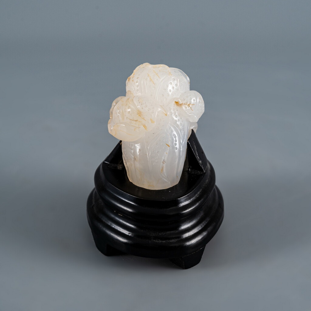 玉雕的白菜,即「玉白菜」,亦即「遇百財」,此雕件晶瑩剔透,更象徵潔身自立,純潔無瑕。