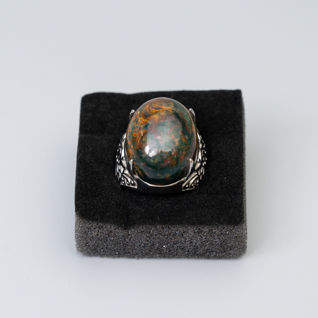 石種材質 : 藍寶虎皮玉+銅台