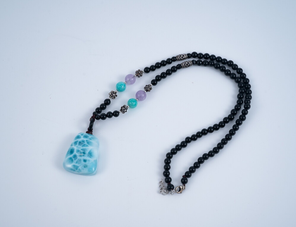 黑玉髓5mm/銀飾/天河石/紫玉 拉利瑪重量16.32g