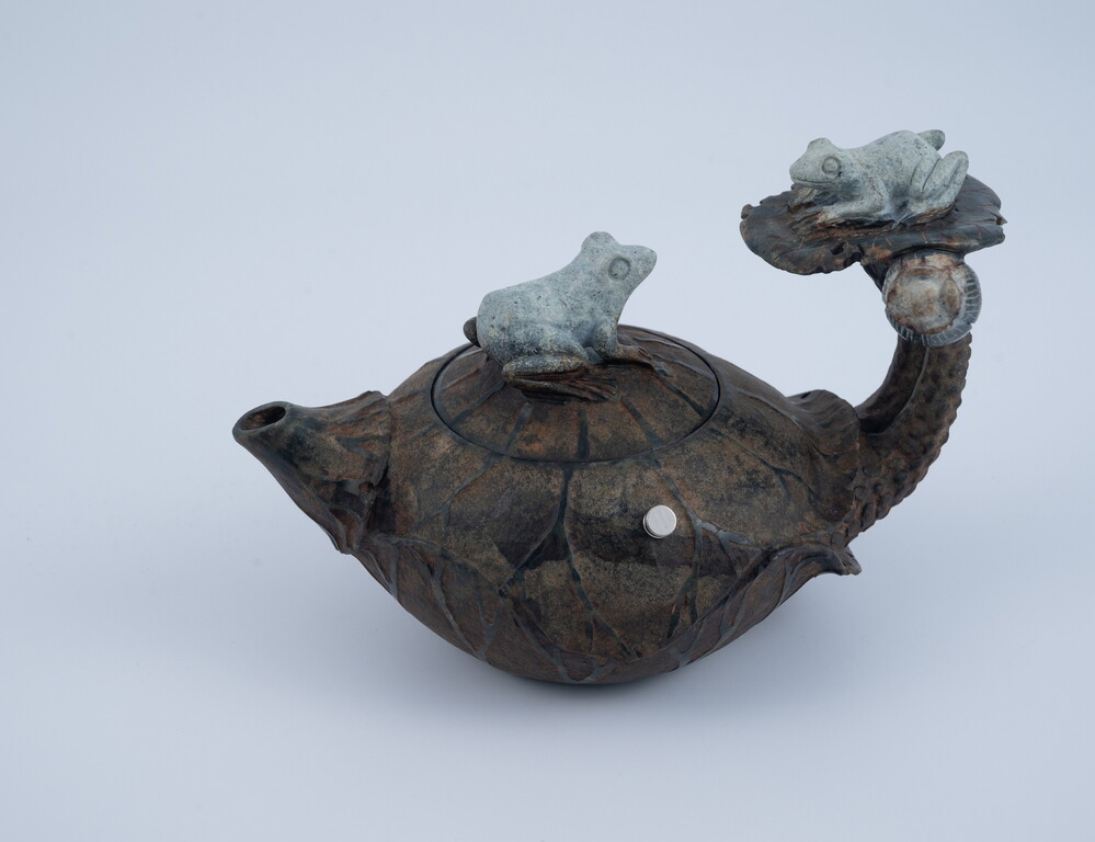 運用雙色彩,雕刻出青蛙與荷葉景象,寓意招財。