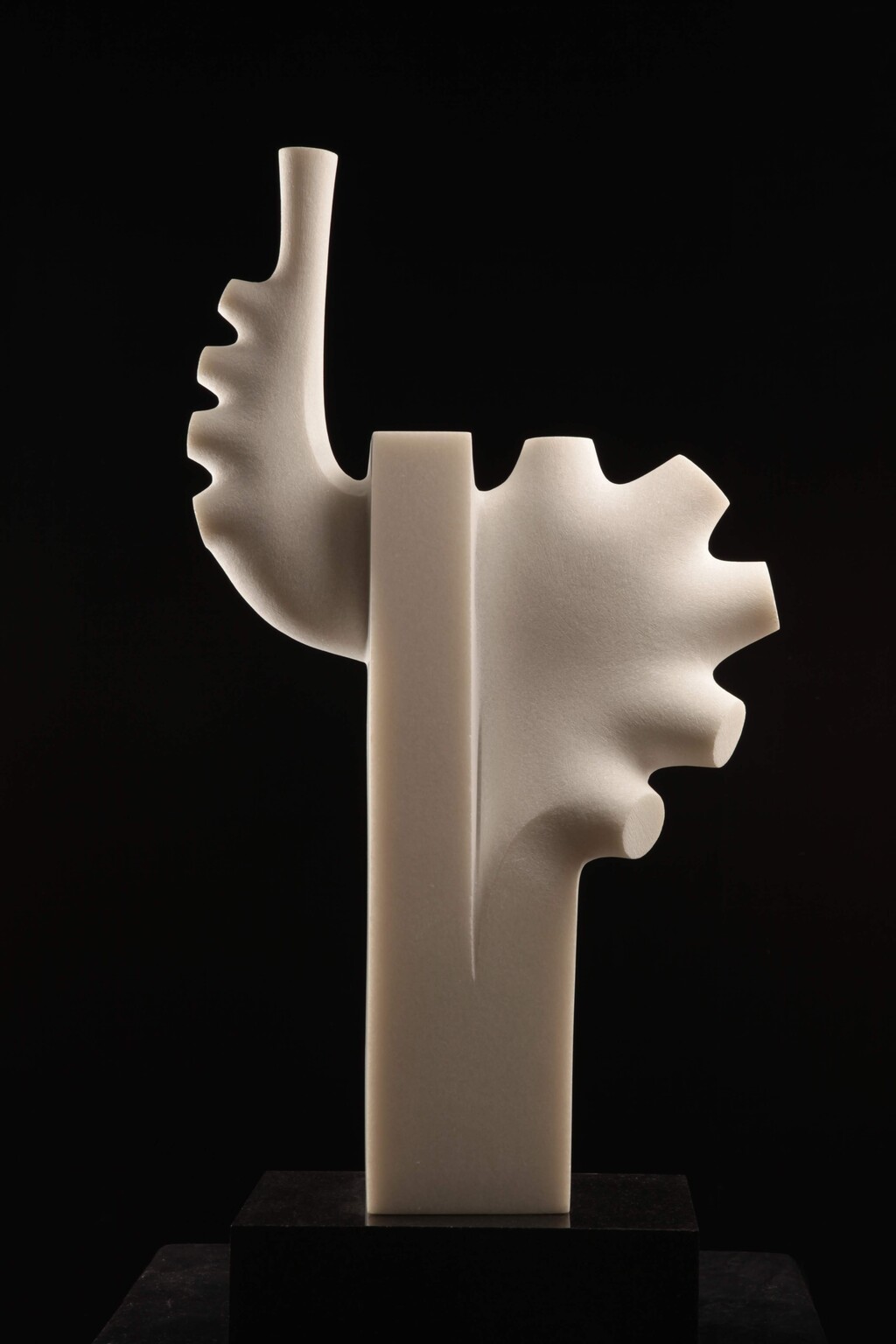 作品以雄鷹強而有力振翅高飛的雙翼構思,結合洶湧的海浪意象,運用圓柱體元素反覆迴旋律動排列,意圖呈現御風而上,乘風破浪的構想。