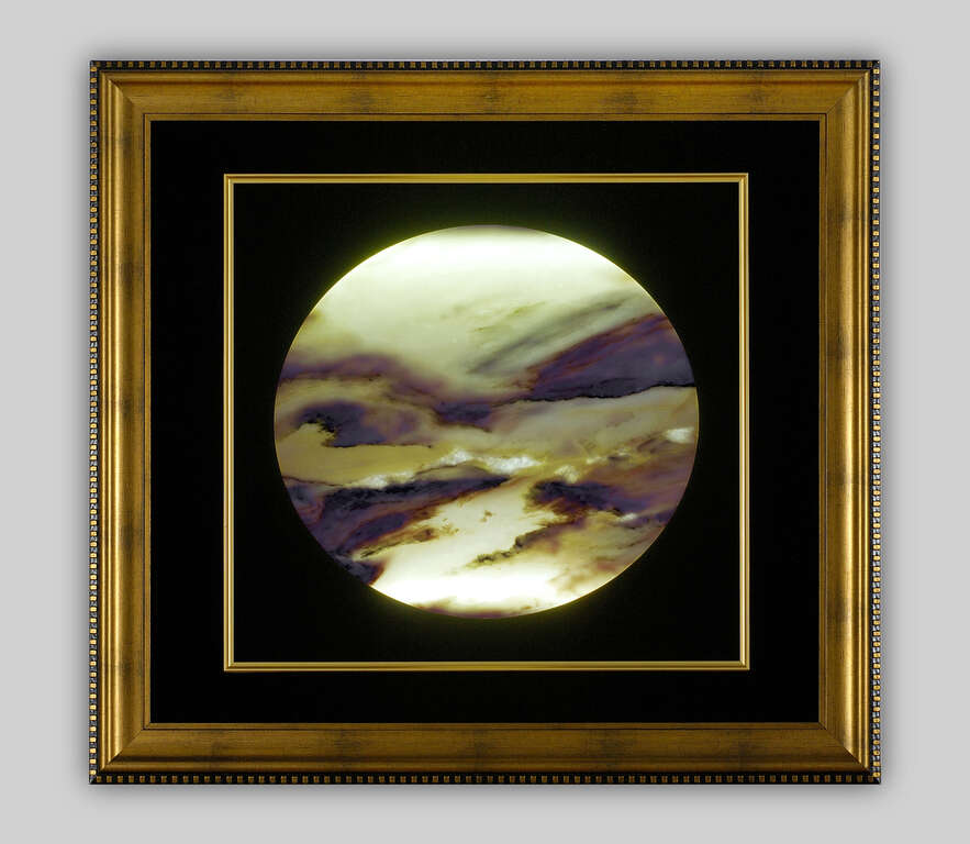 龍雲石光畫以翡翠綠色光彩為主軸,有如北極圈「綠色極光」之美麗炫艷,呈現自然壯闊氣勢,光影虛實相映、氣韻生動。