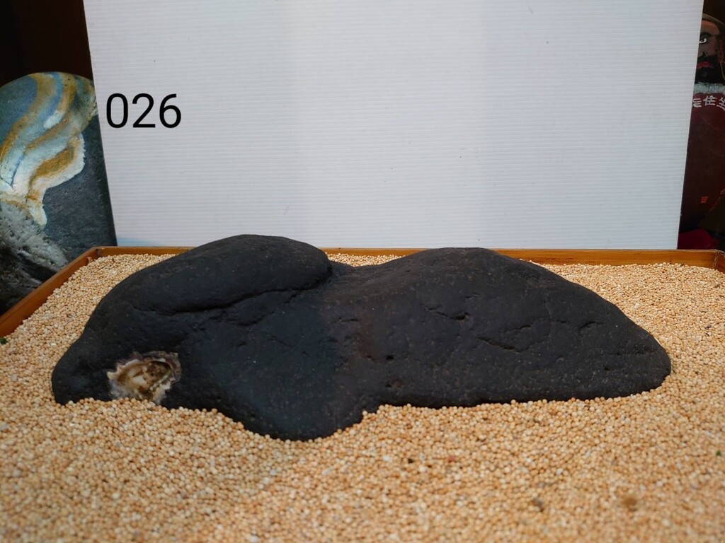寧靜祥和之山水水盤水,山型之黃金比例雙峰搭配,肌理柔順,前尾入盤平均,山腰亦有小港變化,底平,留-貝殼清洗完成,保留開窗之美