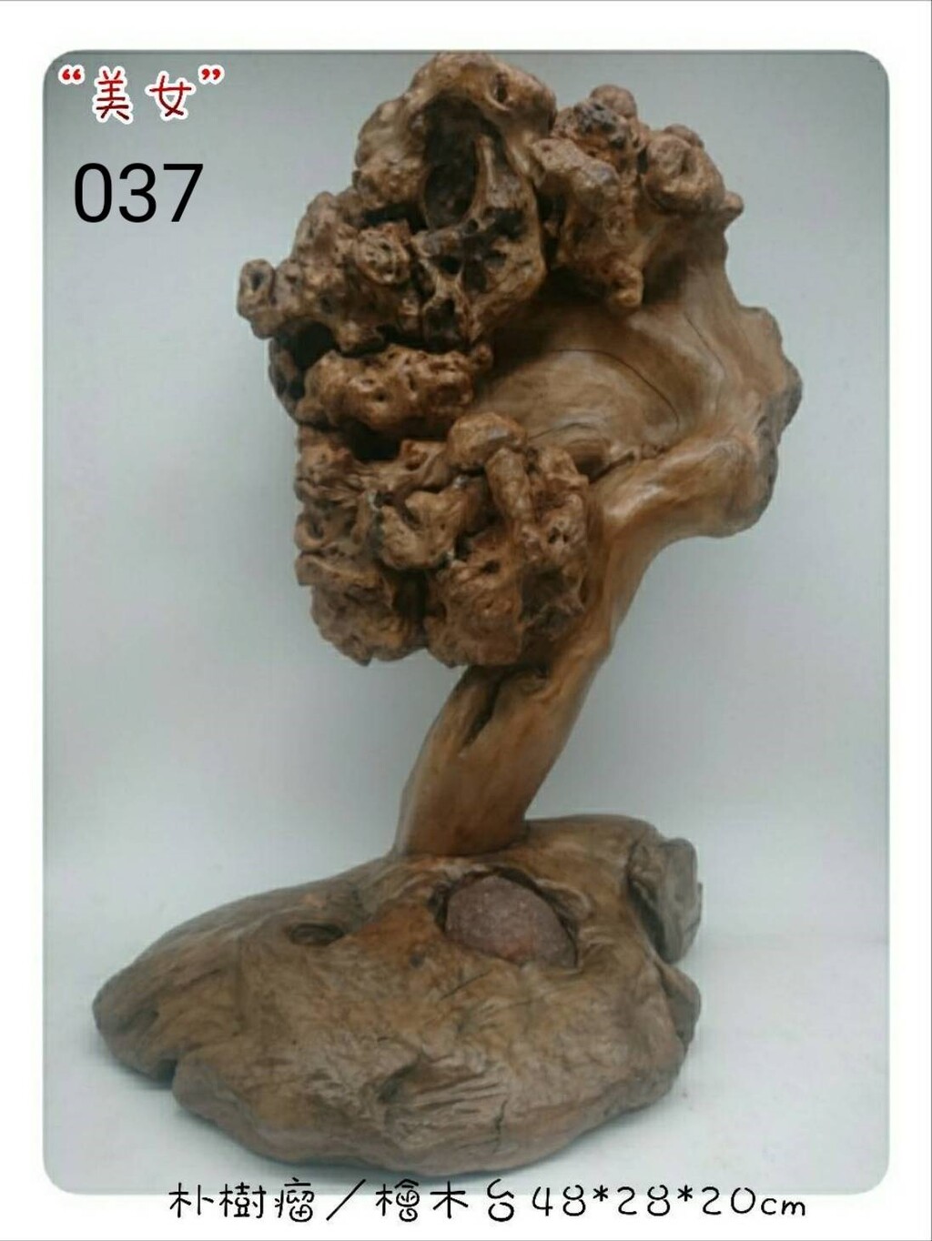 天然朴樹根瘤,肌理柔順,自然之瘤成型在美女捲髮中,似造型設計師,天工之美。