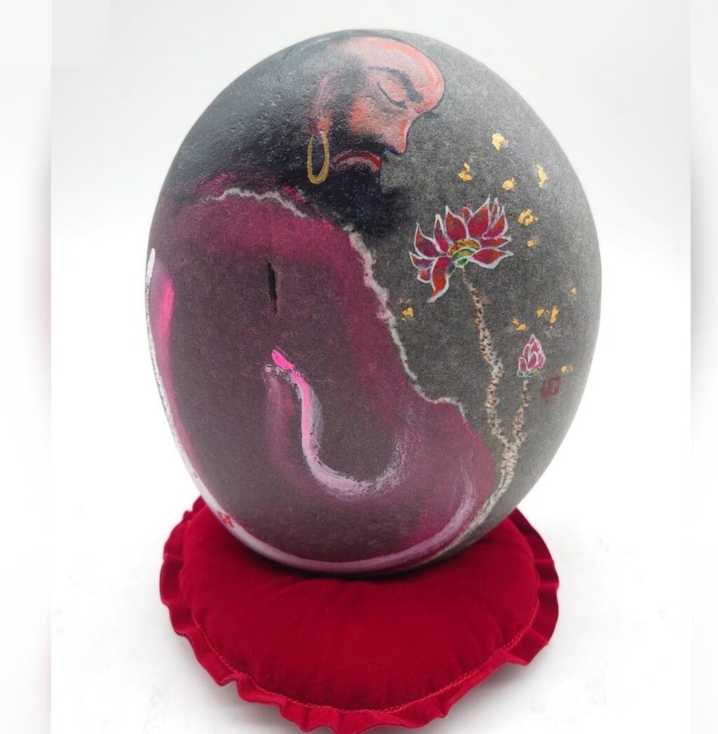 石型要好,保留原石英衣袖及花枝紋路,再思維構圖。“如是我聞”眼耳鼻舌身意皆參,蓮花心境之香自然而生