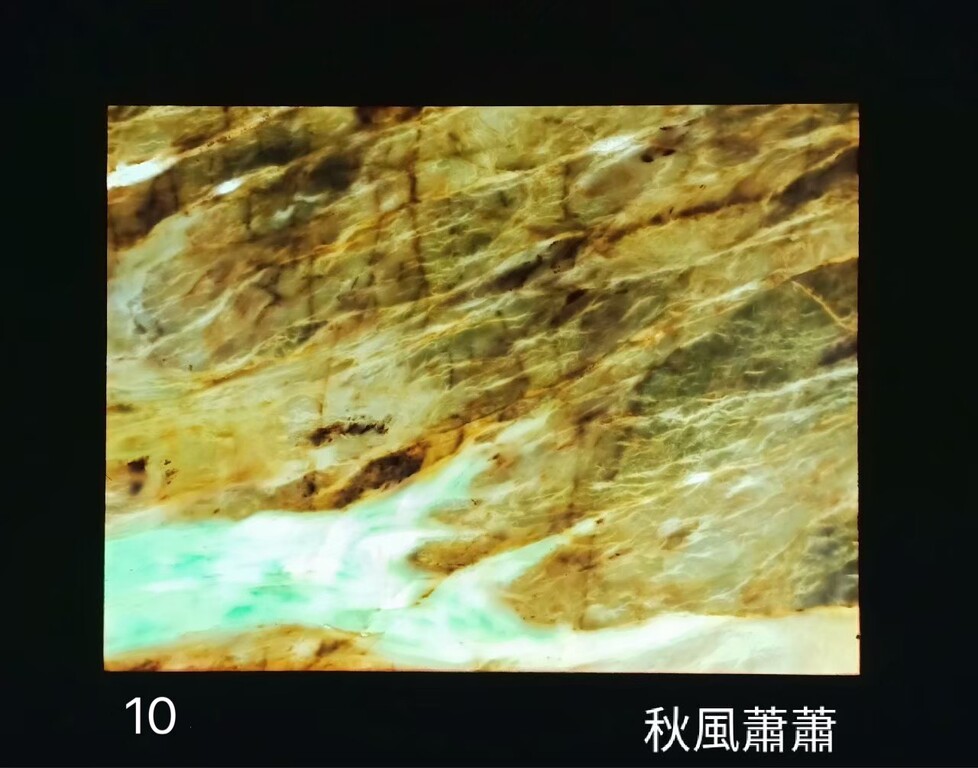 龍雲石因地質構造簡單明晰,石英質與石灰質相互滲透,乳白、酪黃、墨青等,幻化出渾然天成的圖案,線條優美,石色樸質,形構成山巒層疊、波光盪漾的景象。將龍雲石薄化至0.5-0.8公分,安上光源,大自然的神妙與不思議將呈現在你眼前。