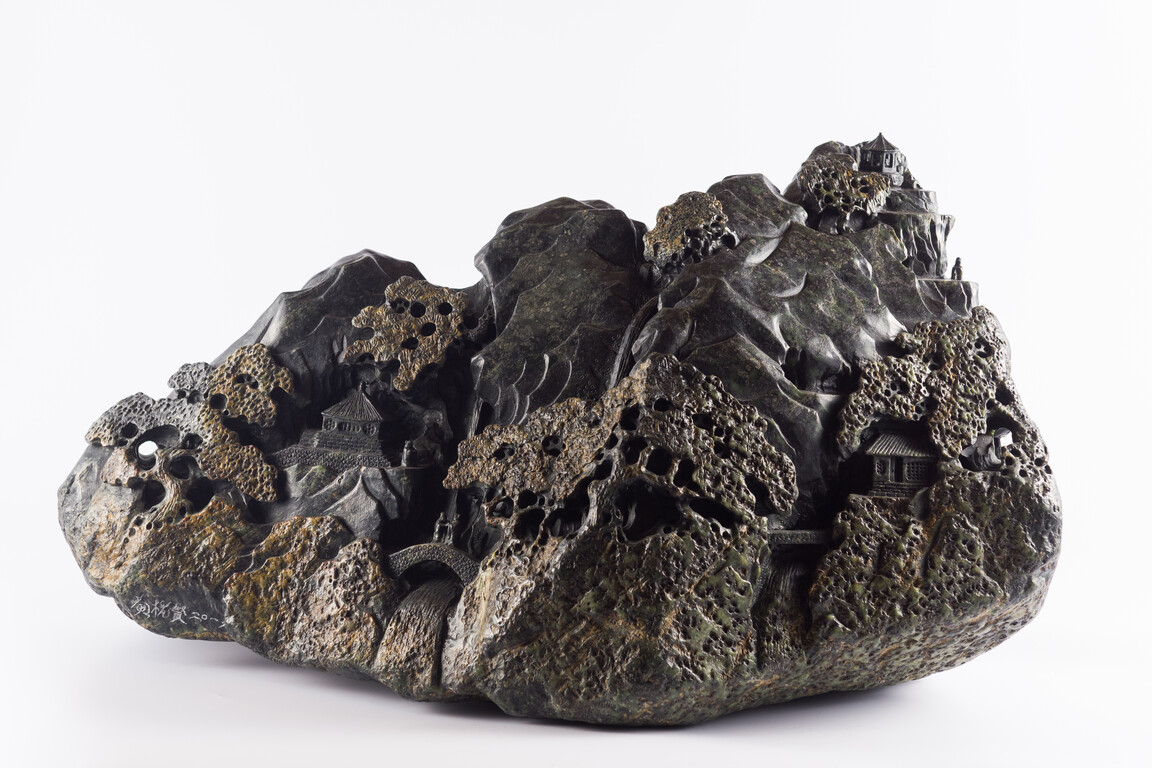 黃櫳賢大師雕刻技法高超,一般罕以墨玉雕刻山水,此作更顯珍貴與獨特。