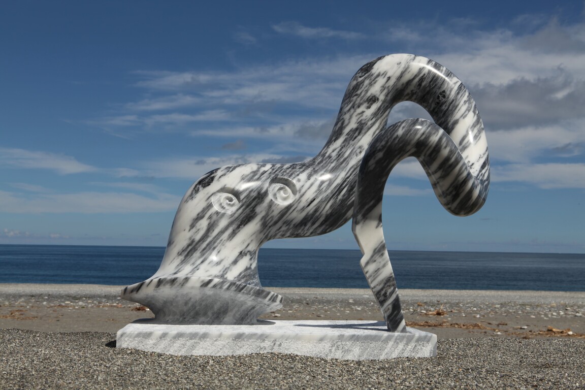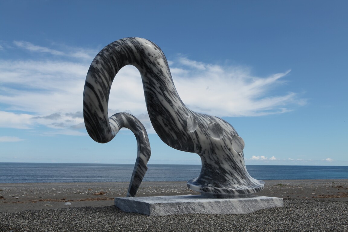 石雕與音樂融合,捕捉原石無形的能量。樂音優美旋律傾瀉,凝固成山與海的無聲樂章,蜿蜒山川、波濤大海,彷彿化為音樂的精靈,輕轉流瀉歌讚大地快樂交響詩。