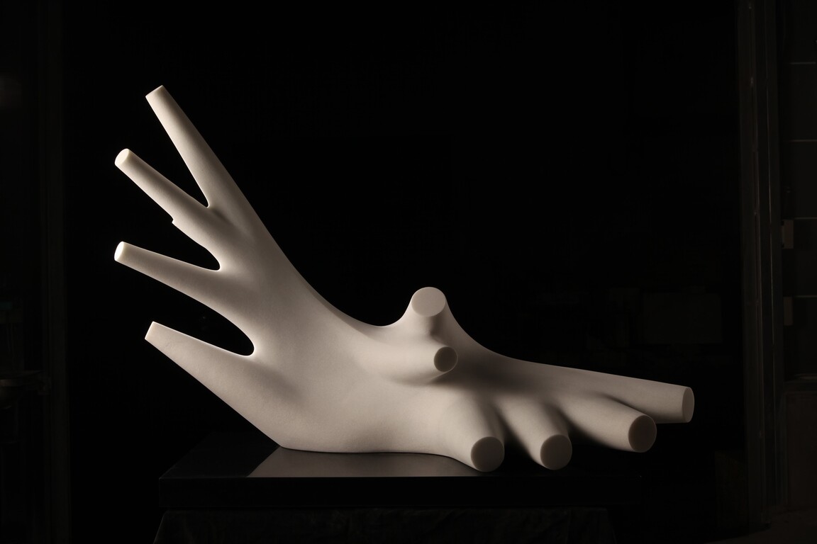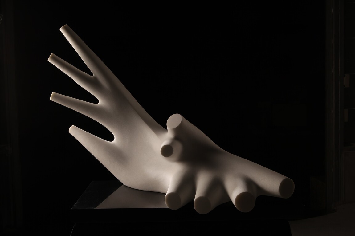 男女雙手互相交纏緊握的姿態,形外求玄。呈現似燕似鳥比翼雙飛的意念,希冀天下有情人終成眷屬。