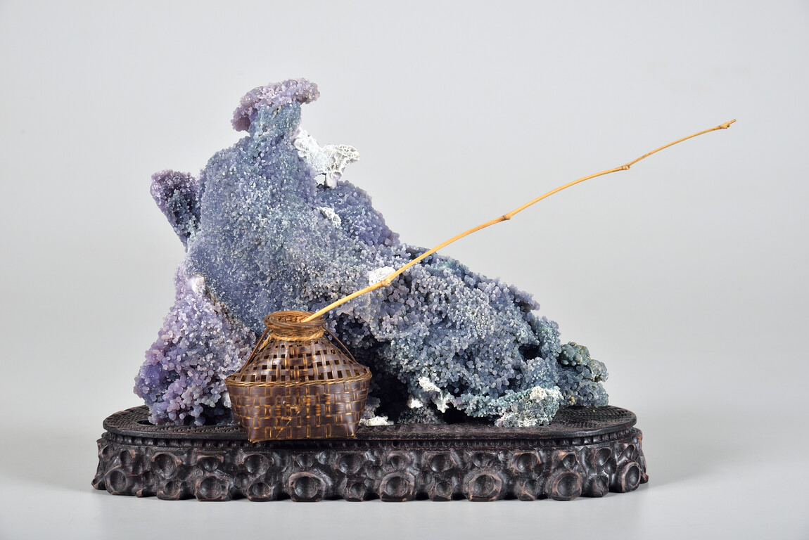 葡萄瑪瑙是兩億年前的海底火山噴發的產物,它們通體色彩斑斕,有鐵鏽紅色、紫色以及透明色等。這些渾然天成的瑪瑙小球互相堆積,猶如串串葡萄。詩人筆下悠然自得的老翁,活靈活現在我們眼前。
