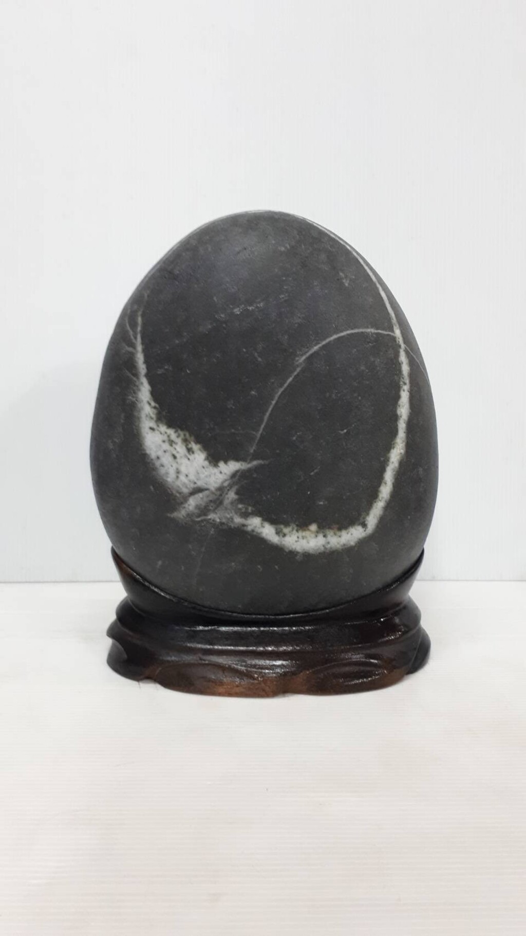 欣賞圖案石,除了石頭質地的基本條件外,圖案與石頭尺寸間應有合適比例;圖案與石頭形狀需有和諧之態;不同形態的圖案應出現在合宜的構圖位置,如此方能呈現整體美感。