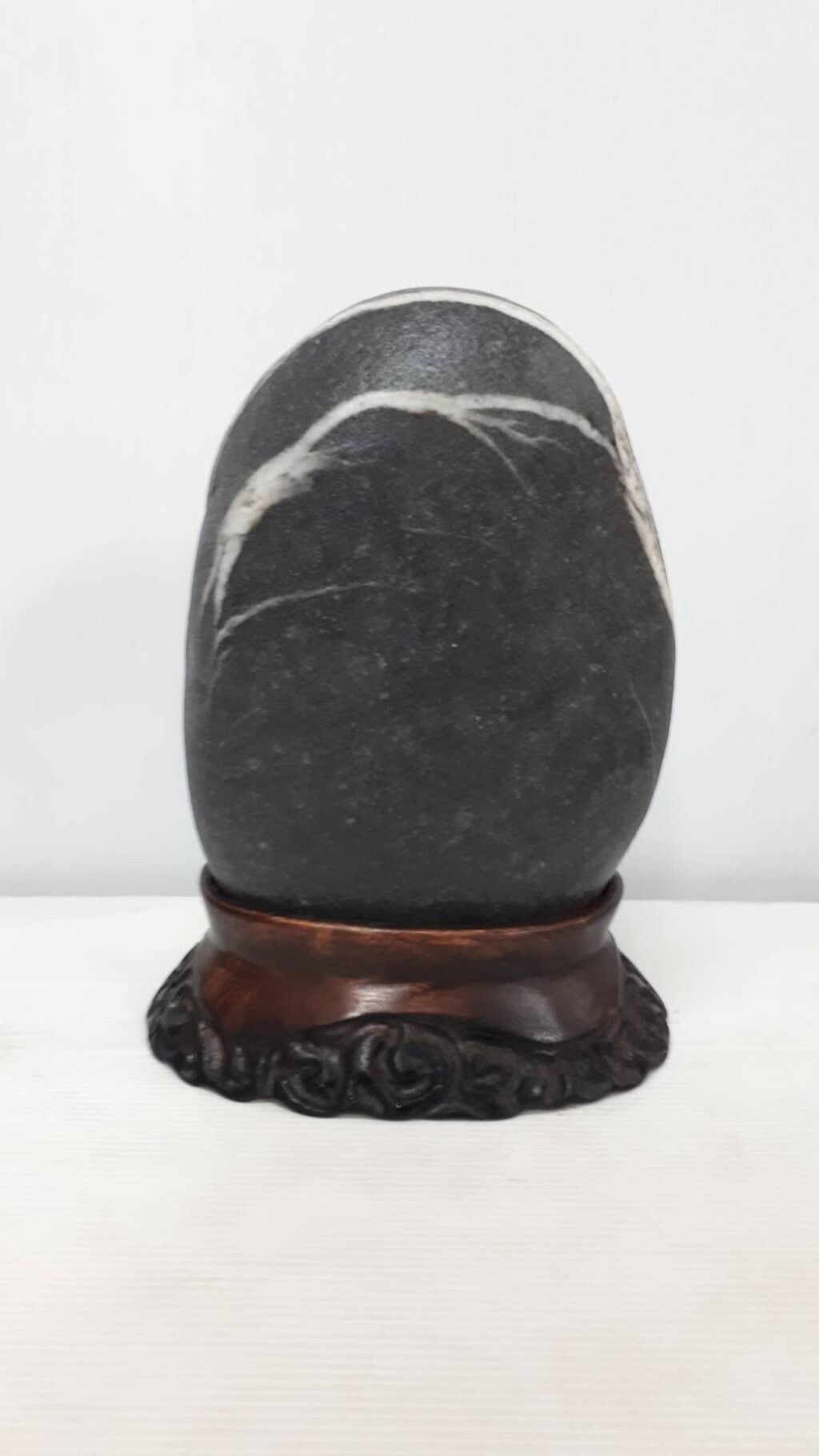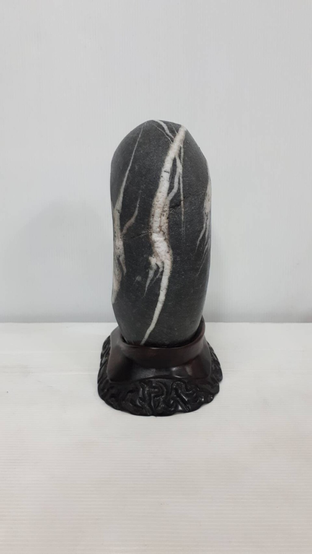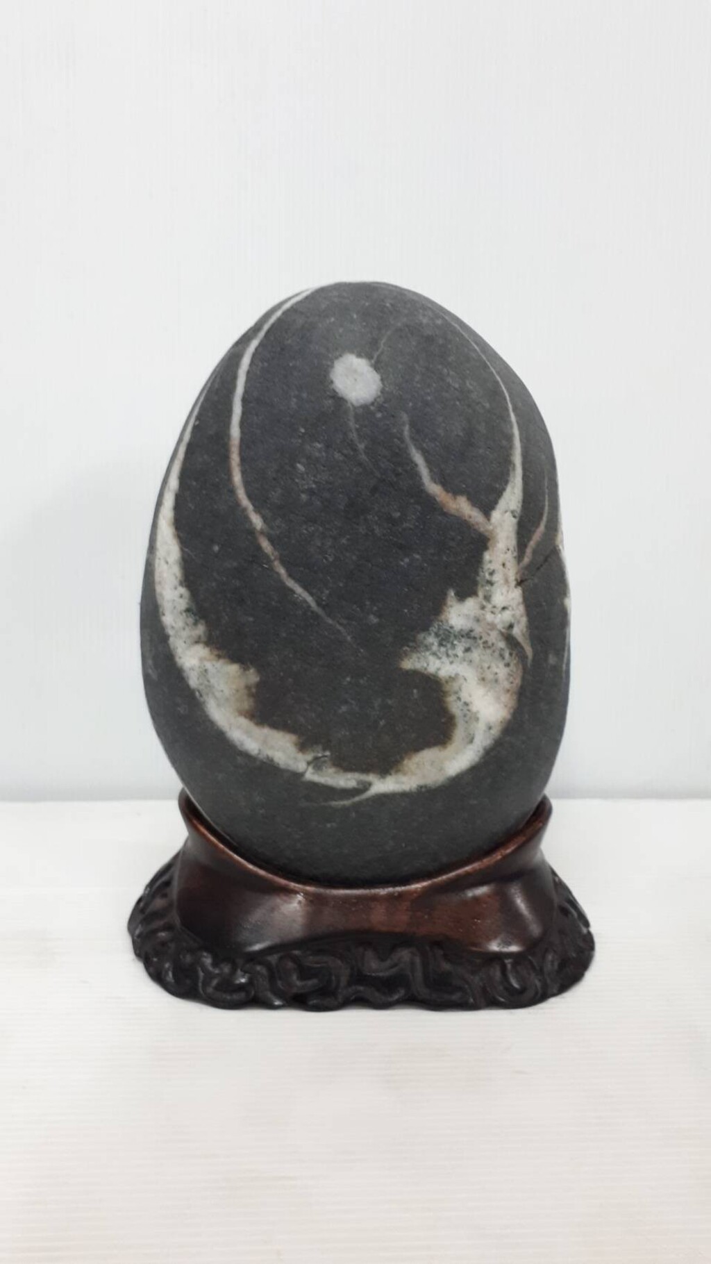 欣賞圖案石,除了石頭質地的基本條件外,圖案與石頭尺寸間應有合適比例;圖案與石頭形狀需有和諧之態;不同形態的圖案應出現在合宜的構圖位置,如此方能呈現整體美感。