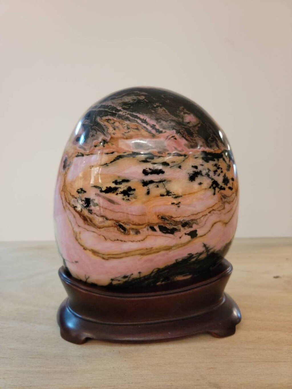 玫瑰石,學名薔薇輝石岩(Rhodonite),摩氏硬度5.5-6.5,三斜晶系。