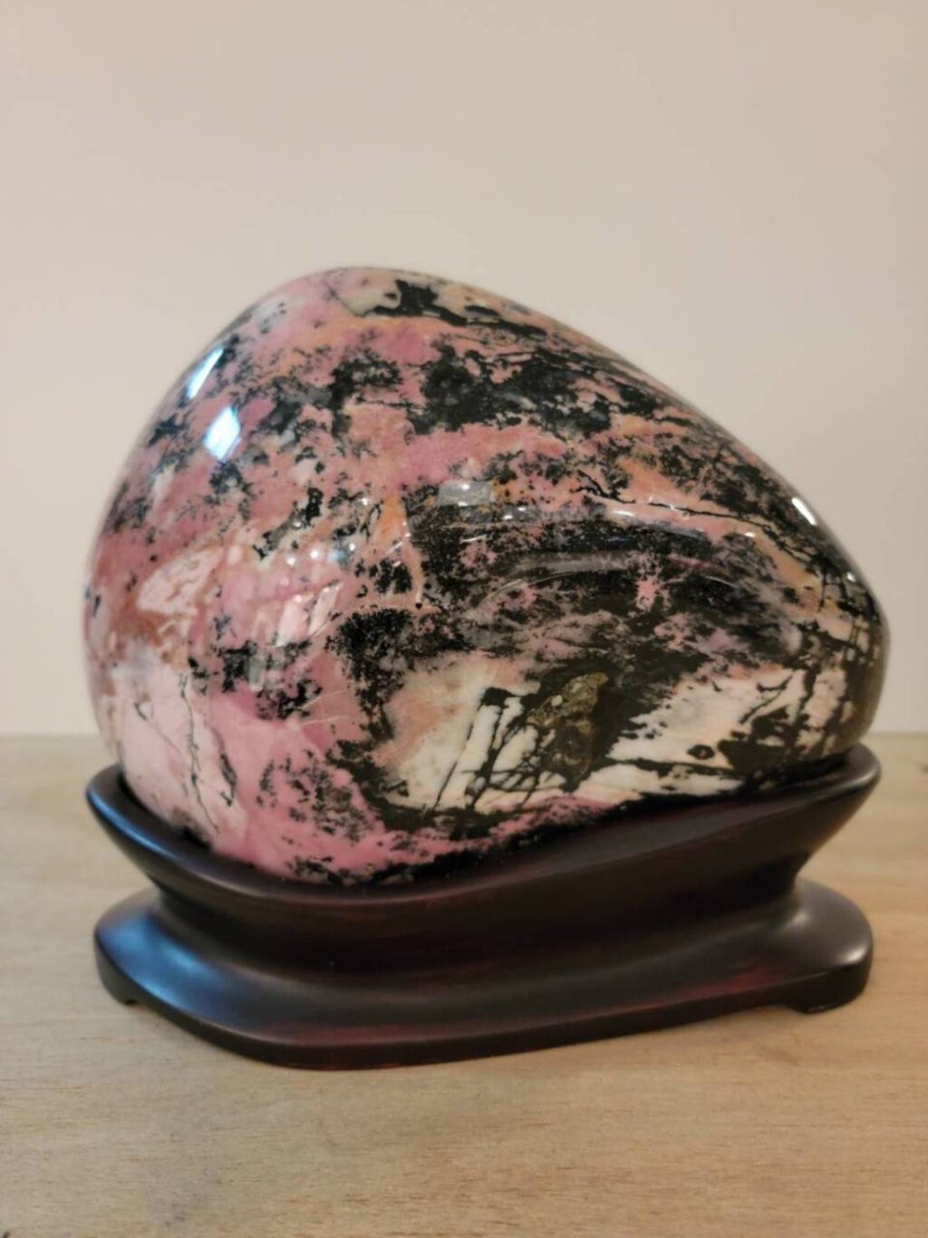 玫瑰石,學名薔薇輝石岩(Rhodonite),摩氏硬度5.5-6.5,三斜晶系。