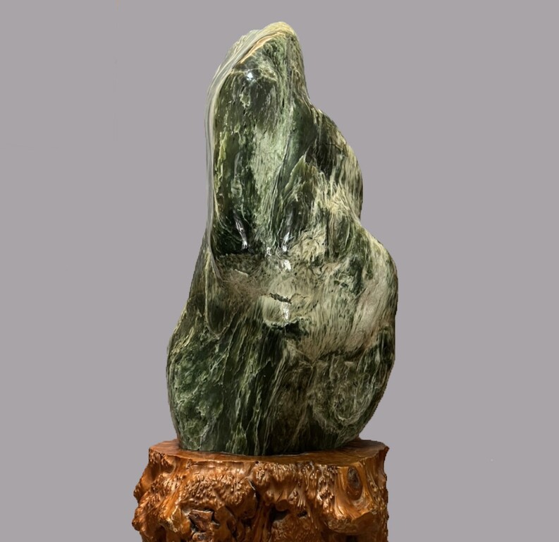 花蓮因賞石風氣興盛,石友亦將台灣玉作為奇石賞玩,豐田玉的綠、石綿的白,以及蛇紋岩的墨綠,交織而成的特殊紋理,易投射成各種自然景緻。