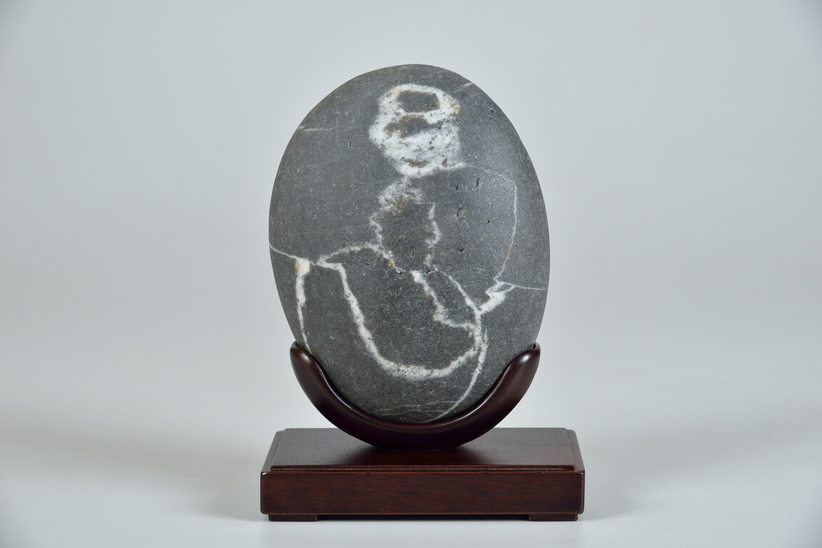 欣賞圖案石,除了石頭質地的基本條件外,圖案與石頭尺寸間應有合適比例;圖案與石頭形狀需有和諧之態;不同形態的圖案應出現在合宜的構圖位置,如此方能呈現整體美感。