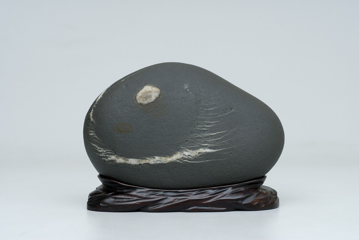 欣賞圖案石,除了石頭質地的基本條件外,圖案與石頭尺寸間應有合適比例;圖案與石頭形狀需有和諧之態;不同形態的圖案應出現在合宜的構圖位置,如此方能呈現整體美感。