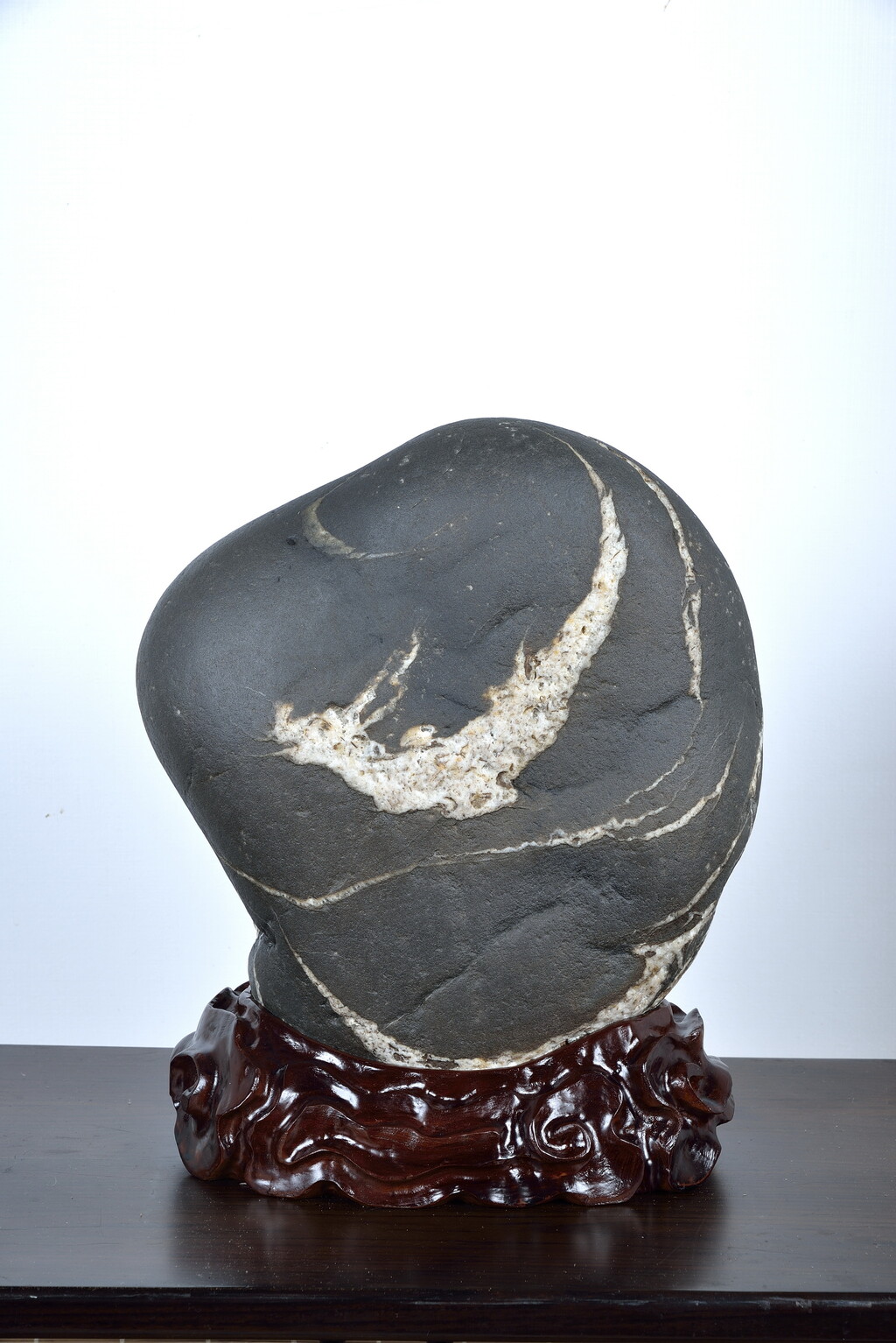 欣賞圖案石,除了石頭質地的基本條件外,圖案與石頭尺寸間應有合適比例;圖案與石頭形狀需有和諧之態;不同形態的圖案應出現在合宜的構圖位置,如此方能呈現整體美感。