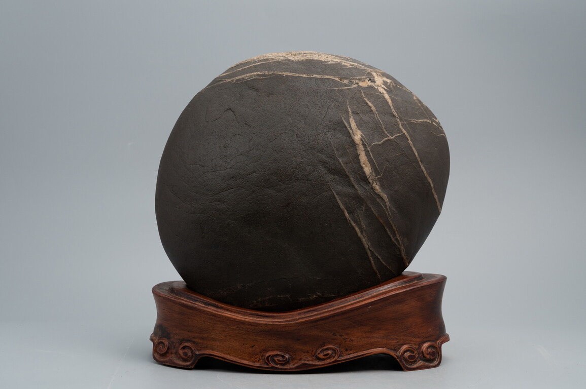 欣賞圖案石,除了石頭質地的基本條件外,圖案與石頭尺寸間應有合適比例;圖案與石頭形狀需有和諧之態;不同形態的圖案應出現在合宜的構圖位置,如此方能呈現整體美感。