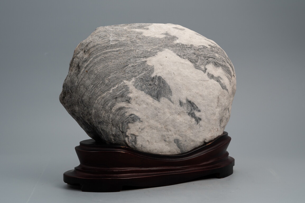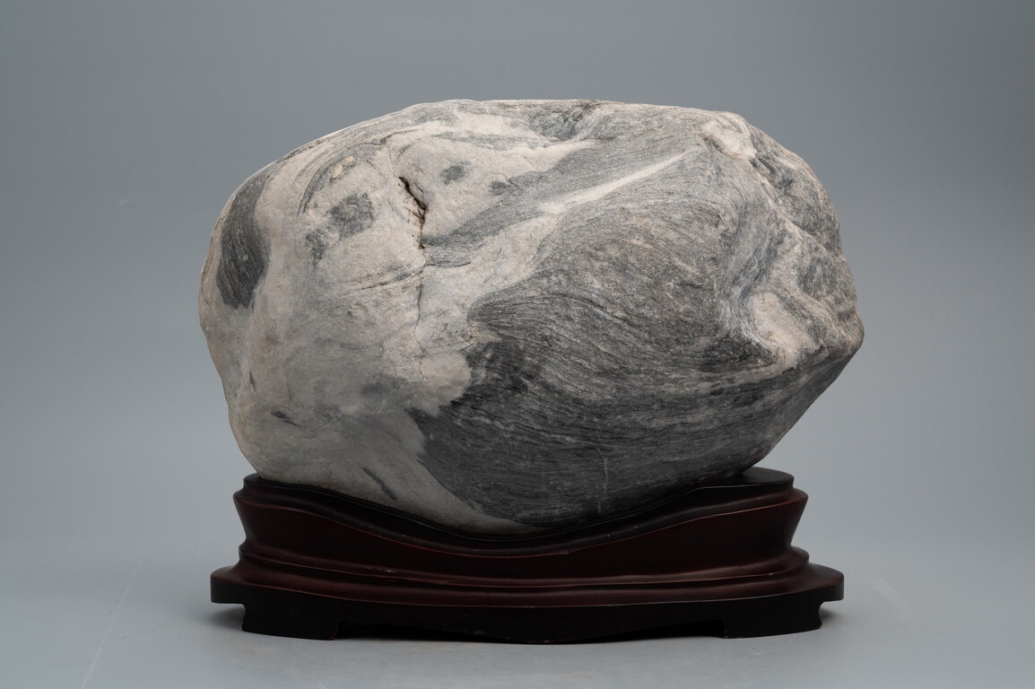 欣賞圖案石,除了石頭質地的基本條件外,圖案與石頭尺寸間應有合適比例;圖案與石頭形狀需有和諧之態;不同形態的圖案應出現在合宜的構圖位置,如此方能呈現整體美感。