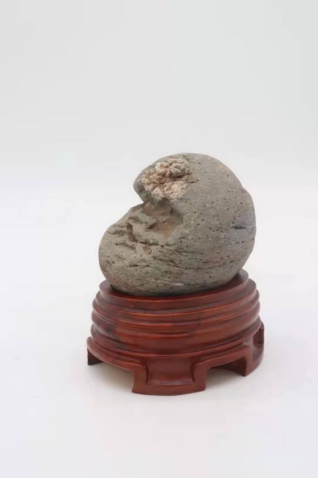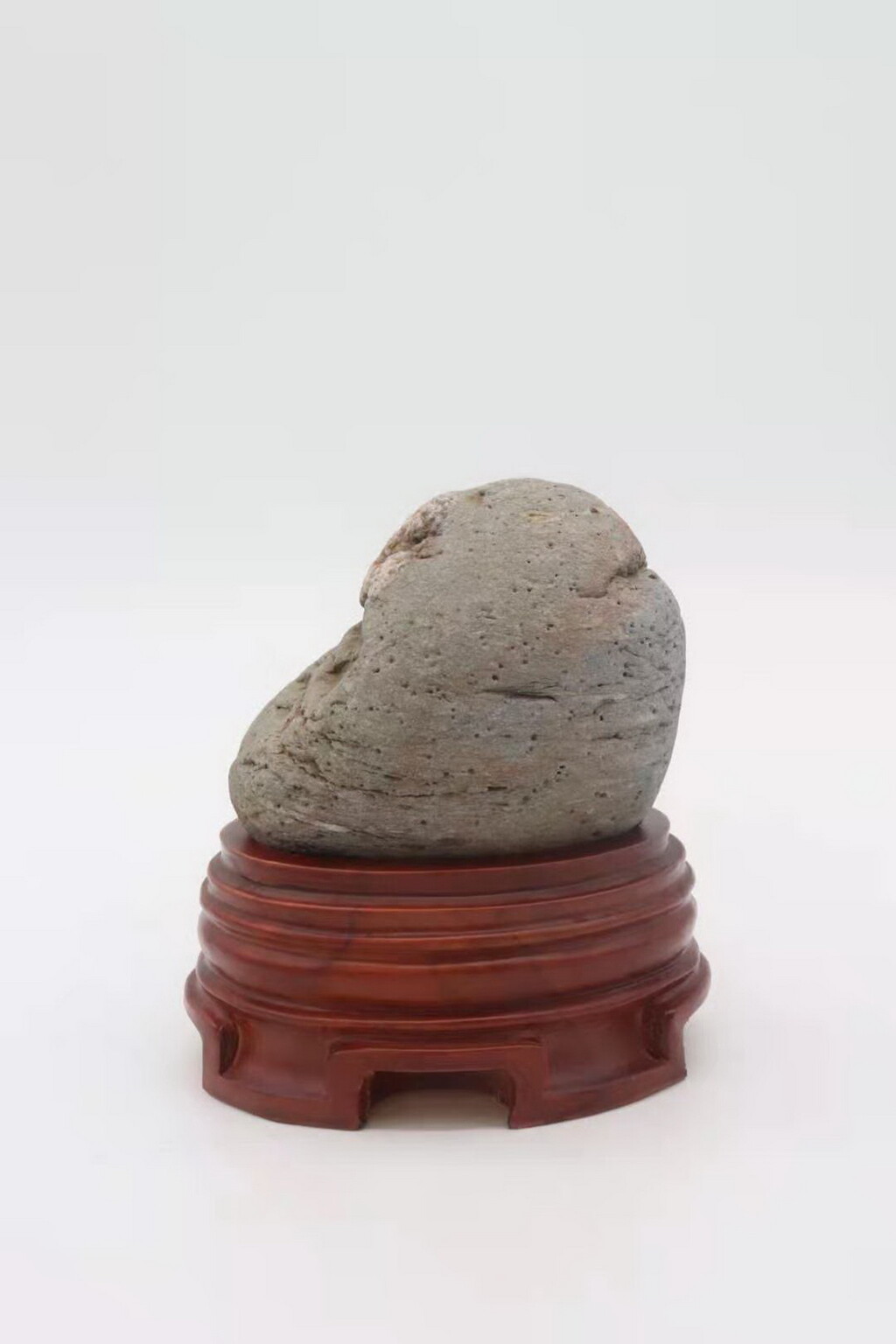 這是本人在老家的河灘上無意中撿到的一塊水沖石,它就像個外星人物,而且還帶著微笑的,很可愛的一個形象,它很堅硬,規格是13X10X8cm,它具有很大的觀賞性及收藏價值、經濟價值、科研價值和美學價值。黃建華