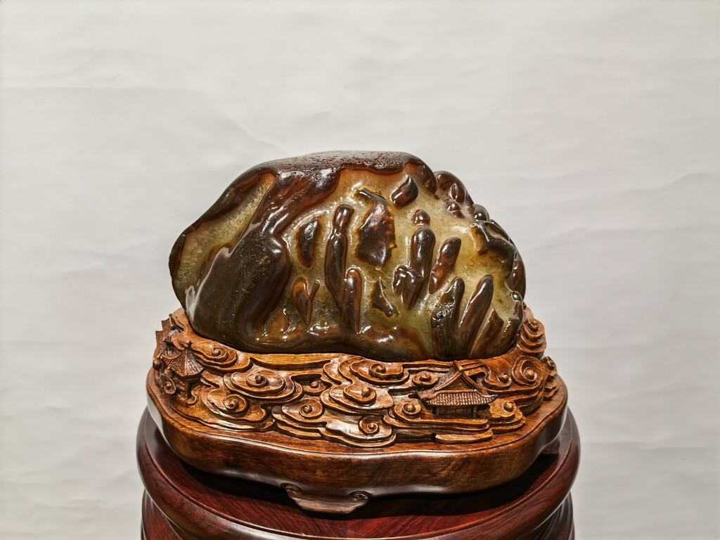 難在水磨砂礪,凹紋成像,而且多位仙人賦上紅彩,難乎其難!