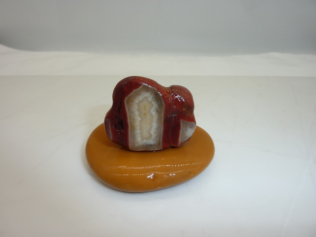 這塊天然禪石——佛光山,出水於2016年農曆四月初八浙江錢塘江上游衢江流域。經測量長度為3.50cm,高度為2.73cm,厚度為2.02cm。瑪瑙質地,色澤鮮豔,紋理清晰,完美無瑕,無任何人工雕琢痕跡。具有深厚佛教文化底蘊。