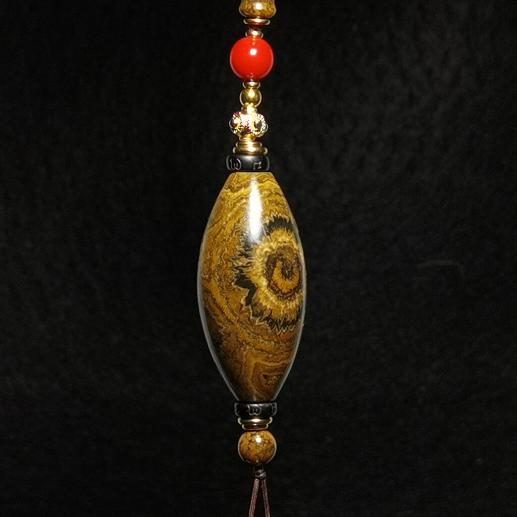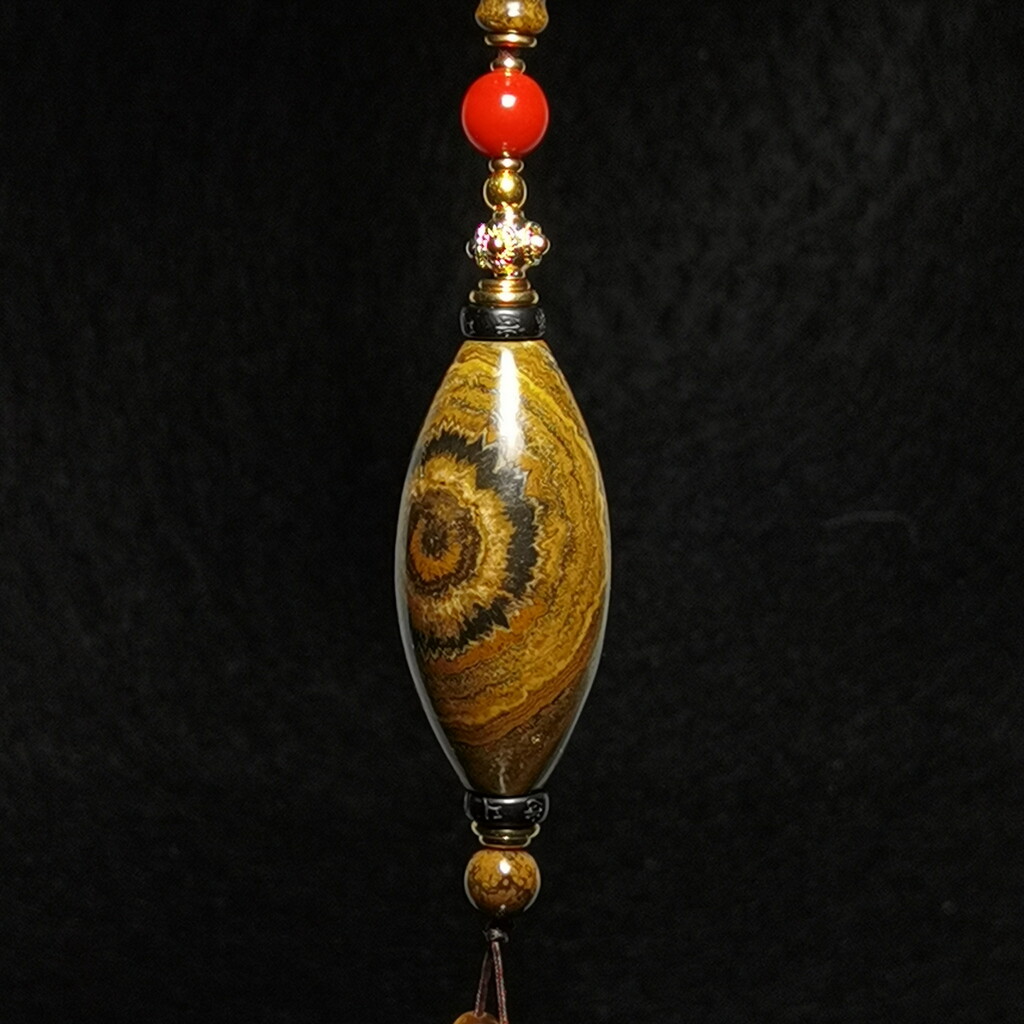 《虎眼》,此珠珠器飽滿,珠形碩大,色澤明黃,爆炸眼紋,黑線醒目,層次分明,猶如虎眼,虎視眈眈,威風凜凜,霸氣十足。