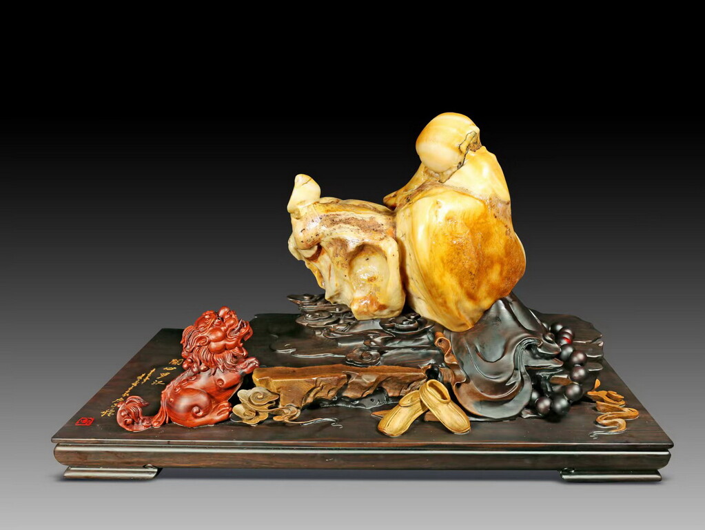 2000年第一批內蒙石商帶戈壁石前來廣西柳州馬鞍山奇石市場,與第一寶主以石換石,2002年在其家中轉讓於前寶主,本人2016年有幸收藏,取名《開心羅漢》2021年9月26日榮譽入選三加北京第十個830賞石日《石畫·畫石》百石聯展!
