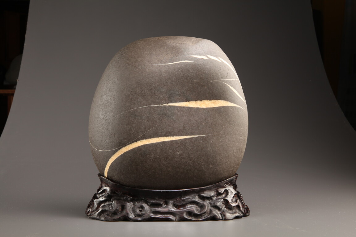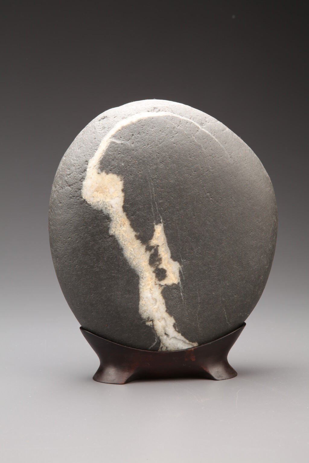 質地:質地是指石頭的硬度、細膩度及水洗度;硬砂岩的硬度大約三度,蒼黑堅實。與其共生的石英,硬度七度,潔白明亮。因長期受海水淘洗、海砂的沖刷,其肌膚細緻樸美。