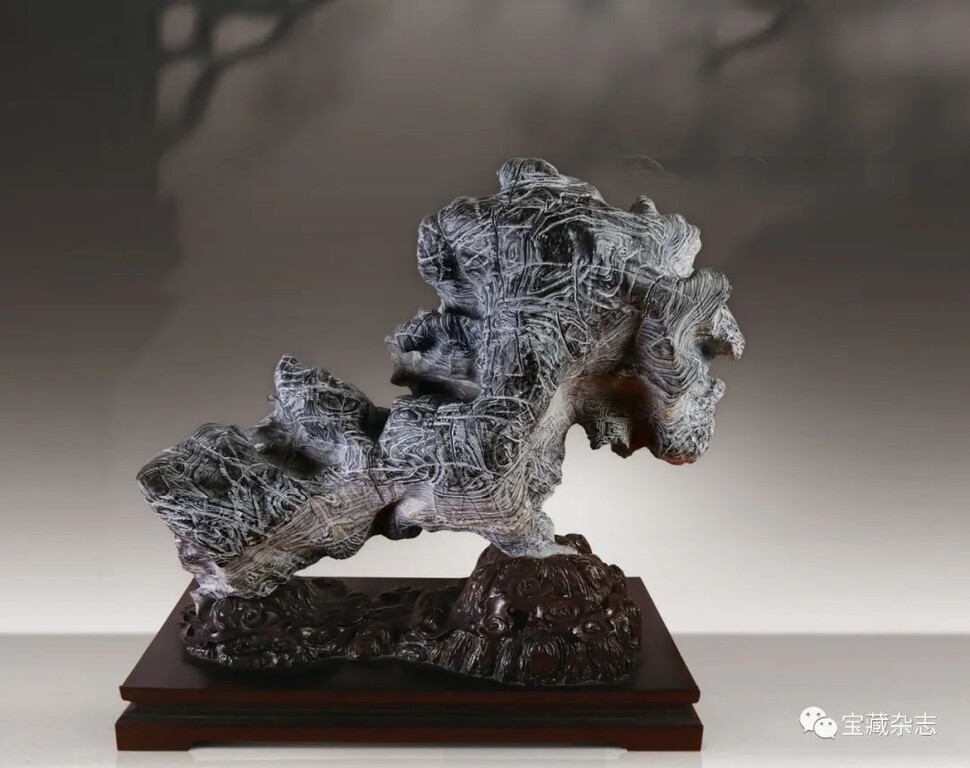 如此就引發了人們的思考:在當今“日常生活的審美化”與“審美的日常生活化”社會環境下,傳承古典賞石的審美方式,推崇古典賞石的審美模式,倘若僅以傳統石種為範例、以精美底座為條件,那麼新石種即使配以精美底座,又該如何擠進“古典”的行列呢?