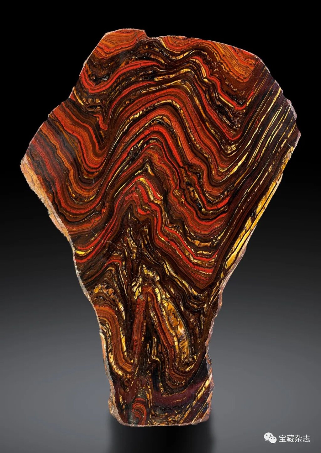 這種石頭多以有機形成的赤鐵礦、碧玉燧石,石英石為主要組成成分。石頭的金屬層像老虎的身上的條紋,顧取名為“虎鐵石”。