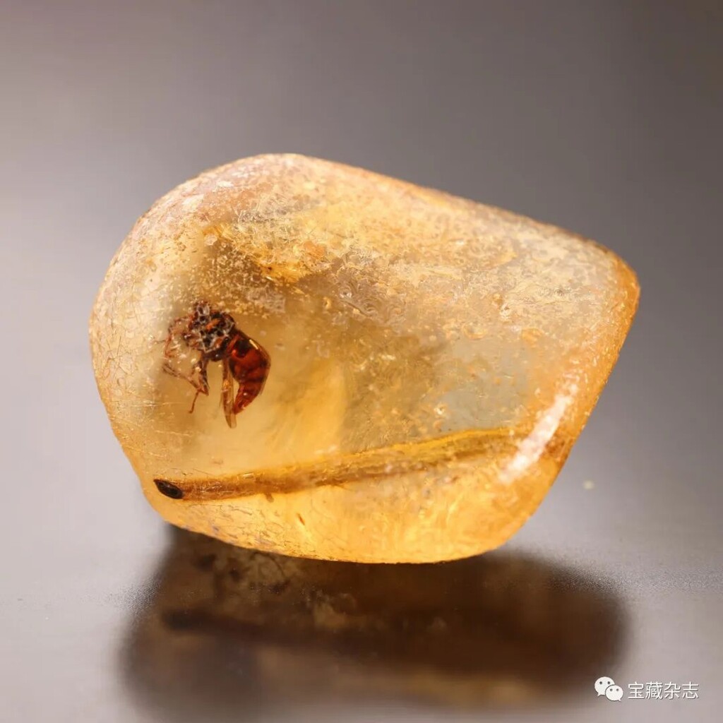 琥珀,是一種透明的化石,是松柏科、雲實科、南洋杉科等植物的樹脂化石,樹脂滴落,掩埋在地下千萬年,在壓力和熱力的作用下石化形成,有的內部包有蜜蜂等小昆蟲,奇麗異常,被稱為蟲珀。