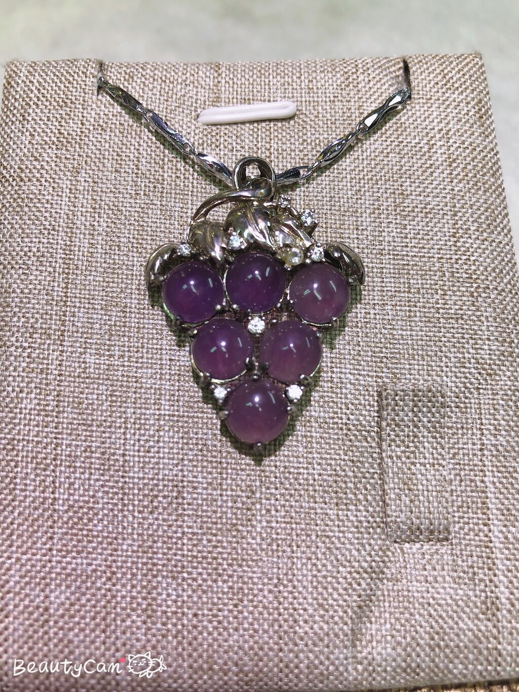 紫玉髓本身的紫作為葡萄最適合不過,此作品為質地最為精透的材質所製作,因此色澤均勻、也較能呈現葡萄的真實。