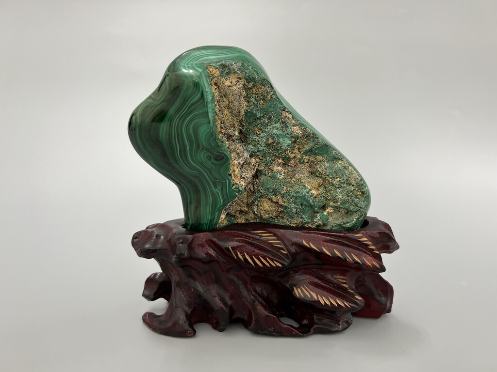 孔雀石是一種天然礦石,也是一種古老的玉料,為水合鹼式碳酸銅,呈翠綠或草綠色的塊石。