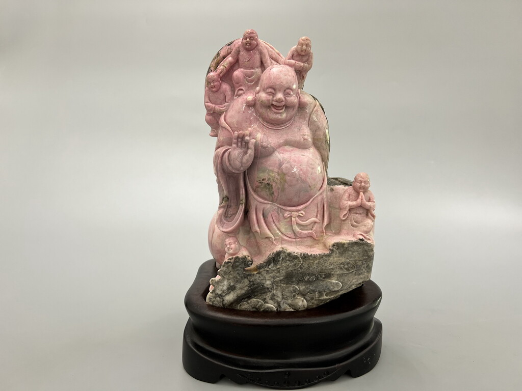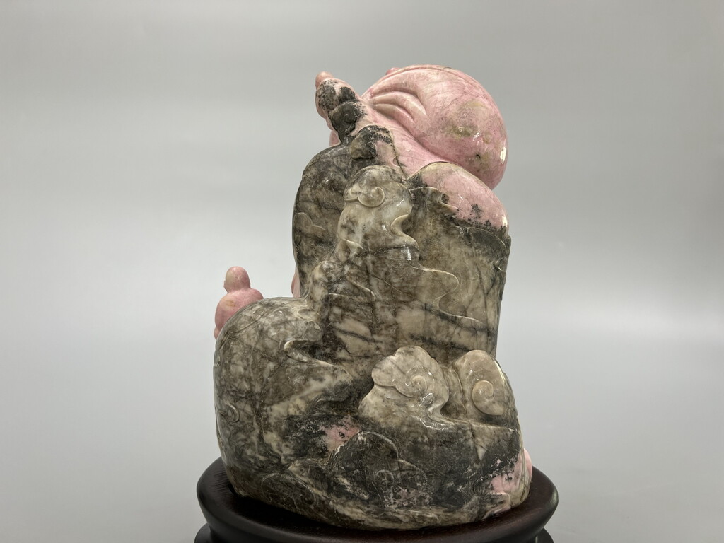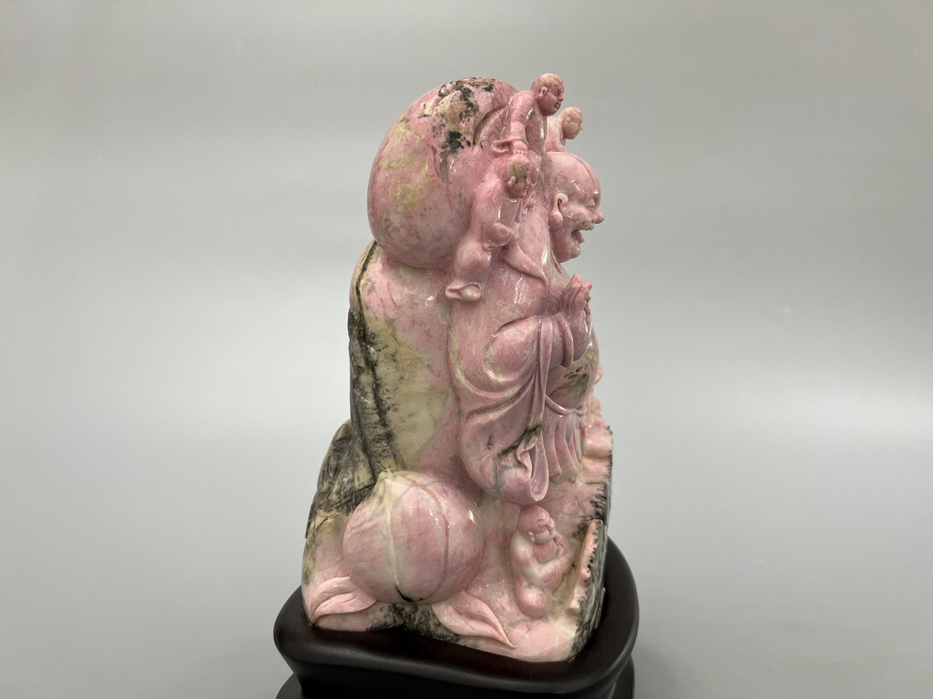 正面玫瑰石色澤柔美,背面為未拋光原石,相得益彰。